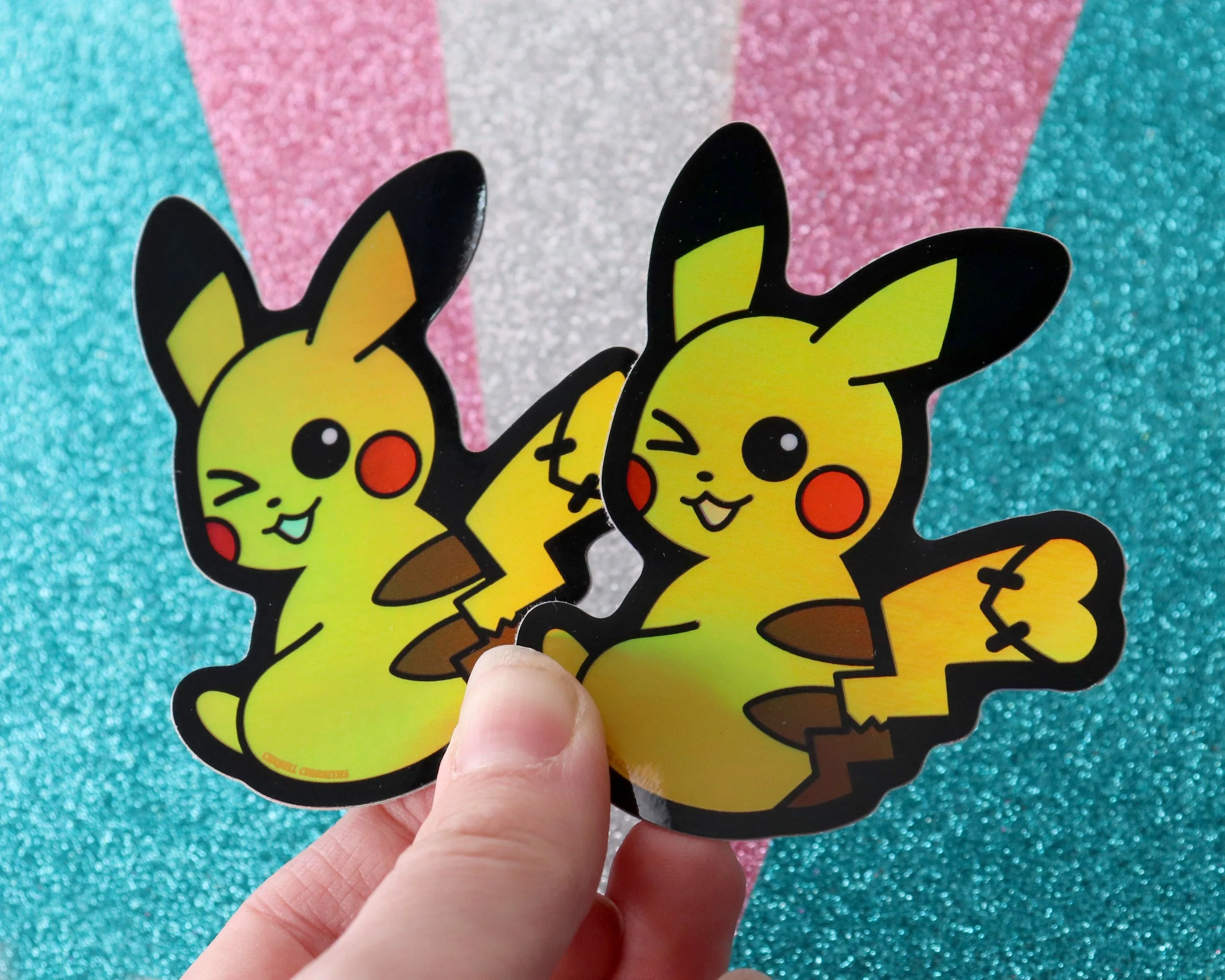 Stickers & PrintsALL NON-US BUYERS NEED TO BUY PINS, STICKERS, AND PRINTS THROUGH ETSY! Trans Pikachu Holographic Sticker $6.00 "Break From Captivity" - Unicorn Glitter Sticker $6.00 "Break From Captivity" - Unicorn Gold Foil Print $25.00